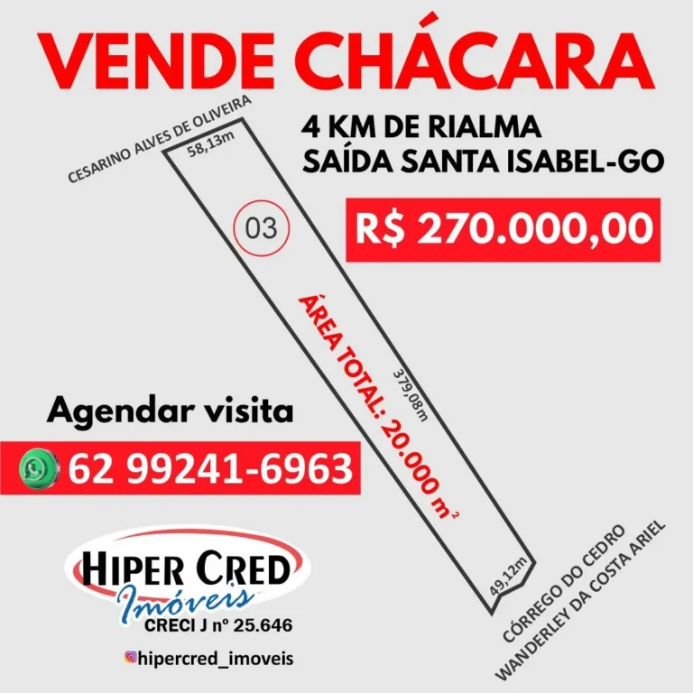 Chácara 03 com 20.000m² saída Santa Isabel