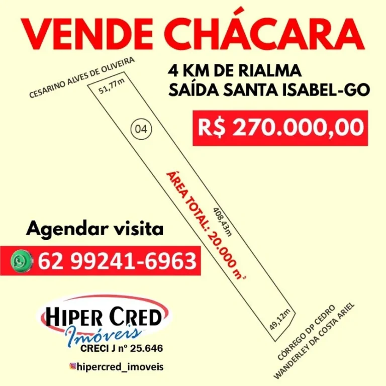 Chácara 04 com 20.000m² saída Santa Isabel