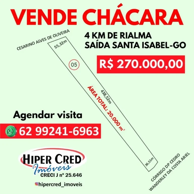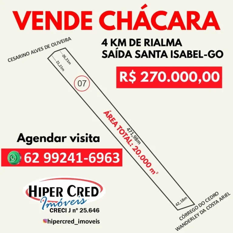 Chácara 2.100m² a 7km de Santa Isabel