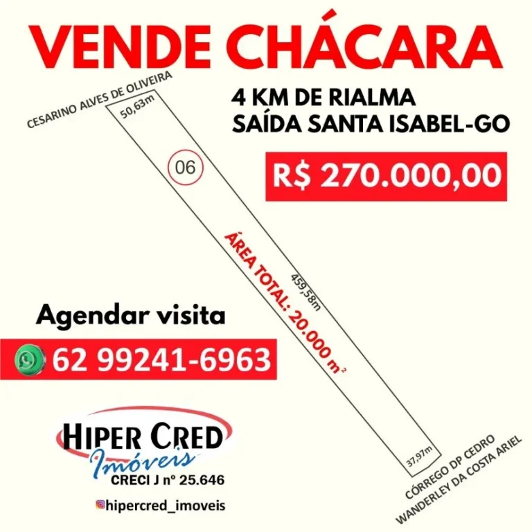 Chácara 06 com 20.000m² saída Santa Isabel