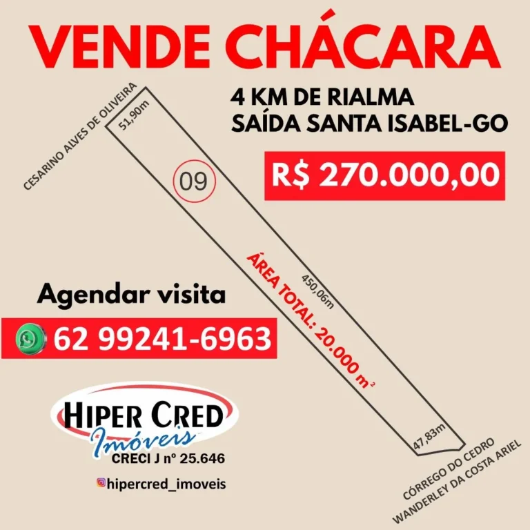 Chácara 09 com 20.000m² saída Santa Isabel