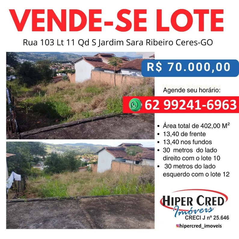 Lote de 402m² rua 13, Lote 11. (13,40 de frente, 13,40 de fundos, 30 metros do lado direito com lote 10 e 30 metros do lado esquerdo com lote 12).
